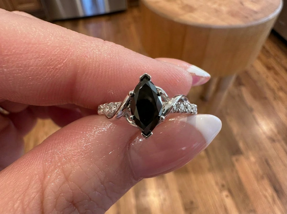 She found a black diamond ring online. Loved the look. Didn't trust the quality.